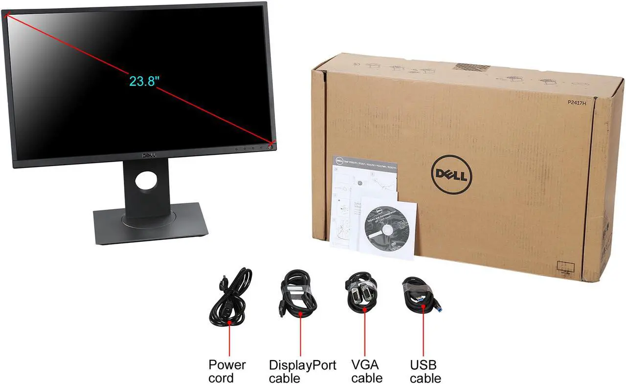 24-Inch Dell P2417H Full HD IPS Business Monitor,6 ms,DisplayPort + HDMI + VGA + USB Hub,Thin Bezel,ComfortView