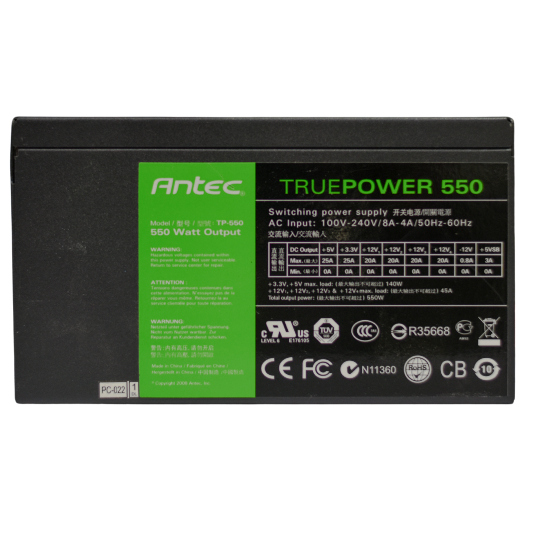 The Antec TruePower TP-550 offers 550W of stable and efficient performance with 80 PLUS certification. Designed with premium capacitors and quiet operation, it?s ideal for mid-range gaming or professional systems.