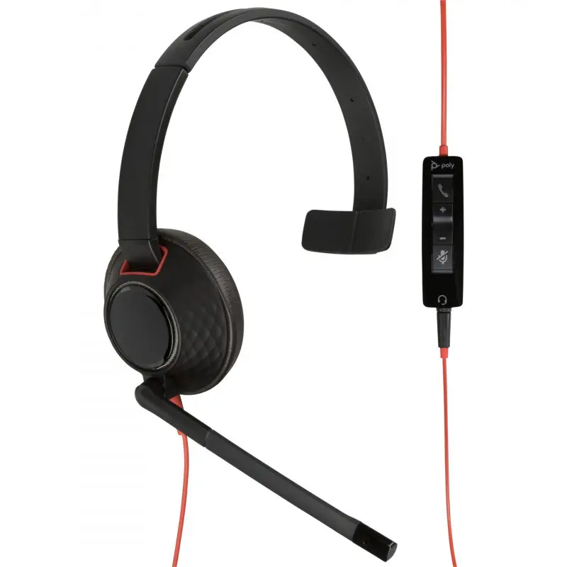 The?Poly Blackwire C5210?is a premium monaural (single-ear) wired headset designed for professionals who require clear audio and all-day comfort. Its distinctive red cable adds a touch of style, while the headset’s features ensure optimal performance in various work environments.