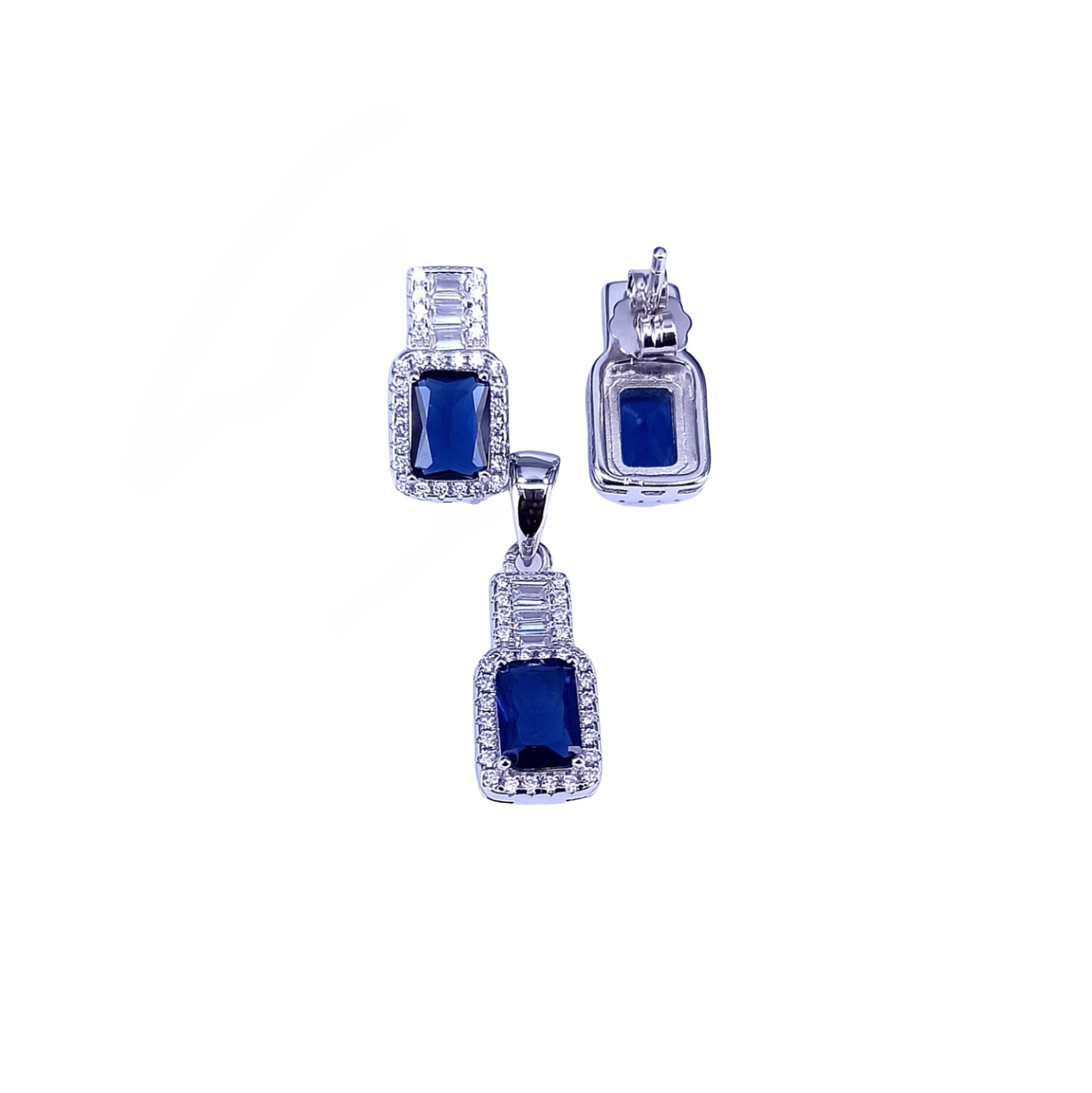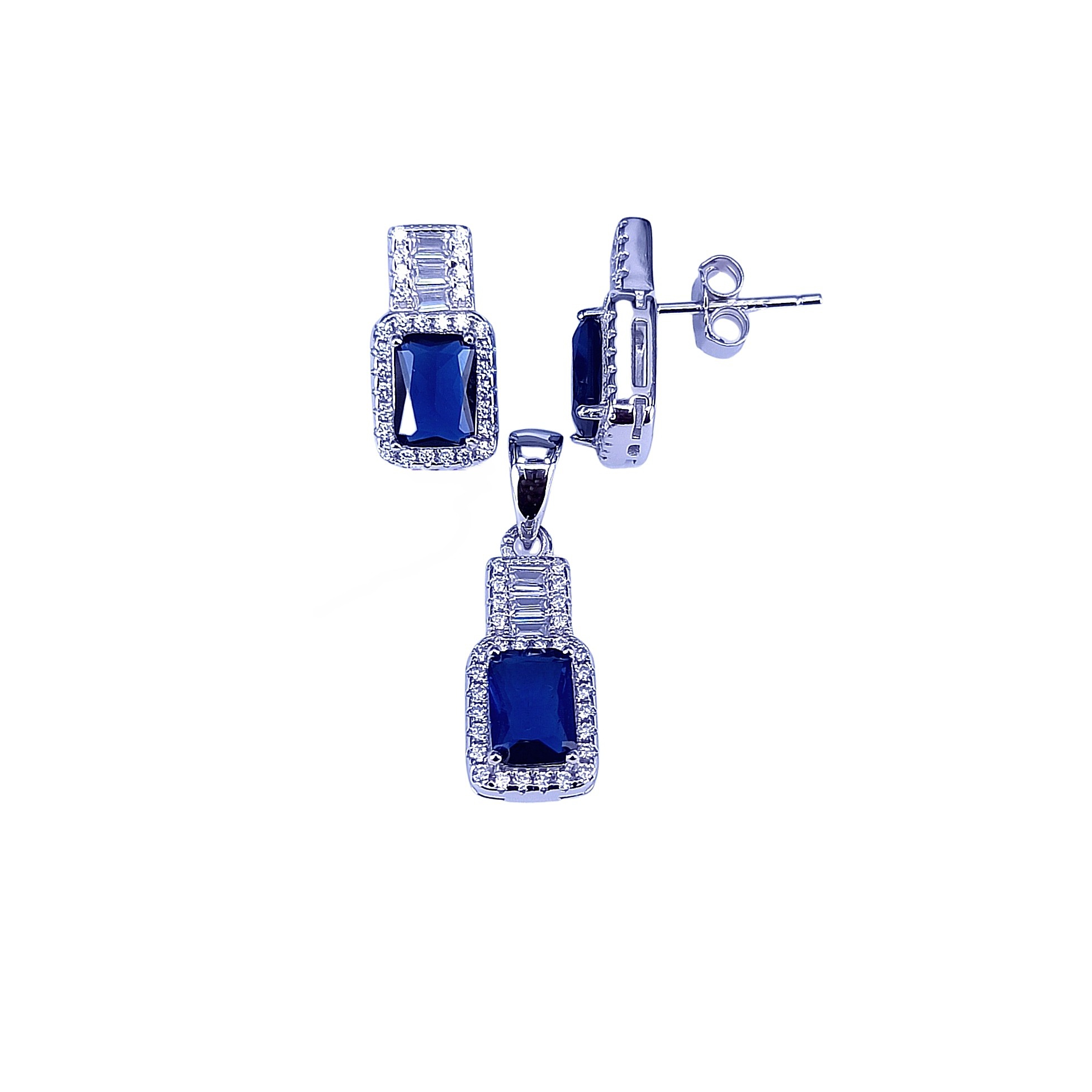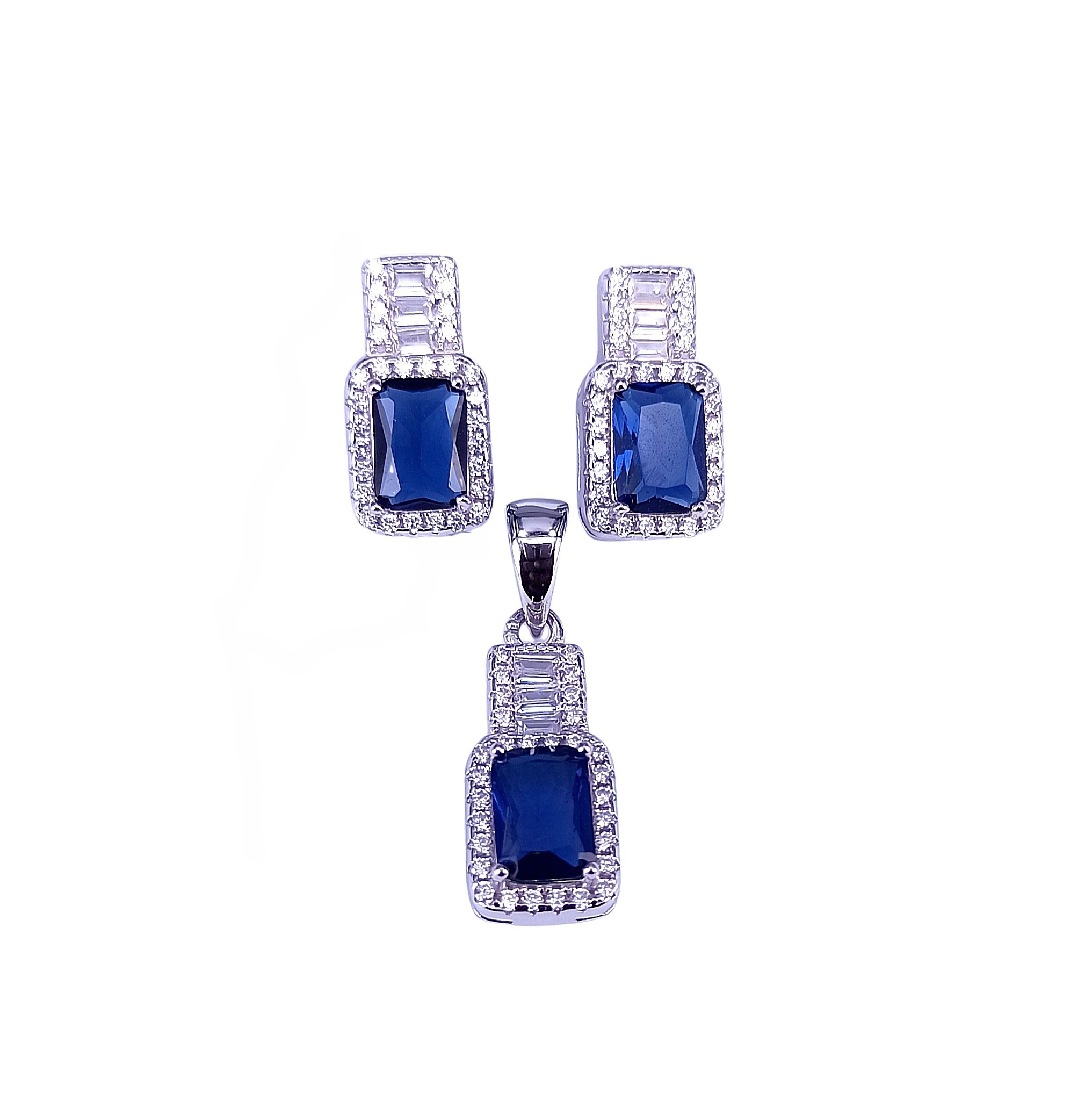 PST00095 – Blue Rectangle Shape Halo Pendant Set